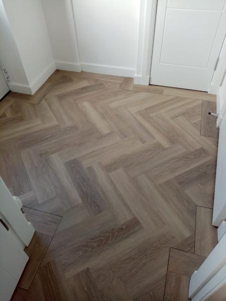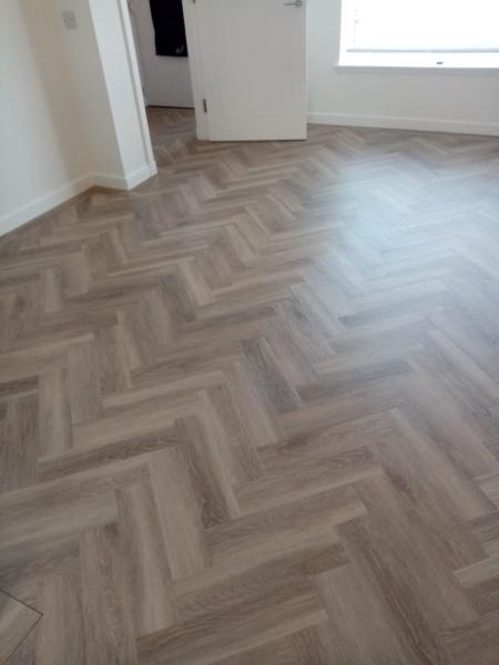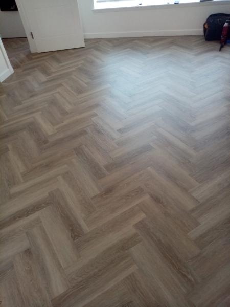 Here we have the first batch of pictures of the year from an installation we supplied and fitted this week. (sorry the pictures aren't so clear - Our fitter needs to upgrade his phone i think lol) Amtico Form colour Foreshore Oak Laid 4.5x18 parquet effect with border feature and 3mm Stria Basalt stripping feature. This was laid to the Kitchen, Lounge, Hall, Back Hall and WC. We prepared the subfloor with 6mm plywood. Beautiful